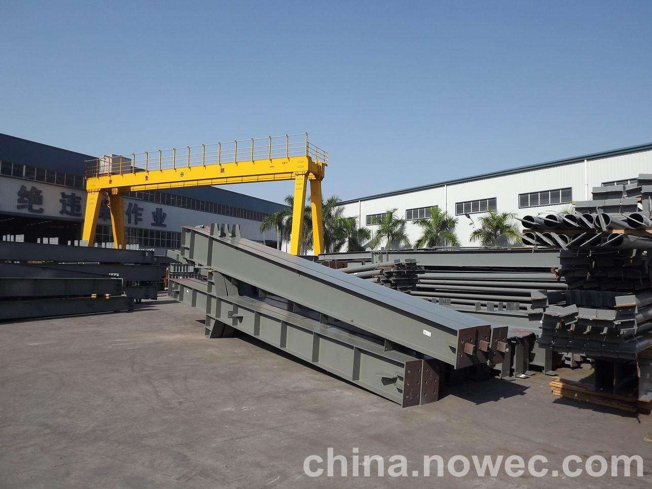 条状单元一般沿长跨方向分割,其宽度约为1~3个网格,其长度为l2或l2/2(l2为短跨跨距)。块状单元一般沿黄冈网架平面纵横向分割成矩形或正方形单元。每个单元的重量以现有起重机能胜任为准。条(块)与条(块)之间可以直接拼装,也可空一网格在高空拼装。由于条(块)状单元是在地面拼装,因而高空作业量较高空散装法大为减少,拼装支架也减少很多,又能充分利用现有起重设备,故较经济。这种安装方法适用于分割后网架的钢度和受力状况改变较小的各类中小型网架,如两向正交正放四角锥、正放抽空四角锥等网架。